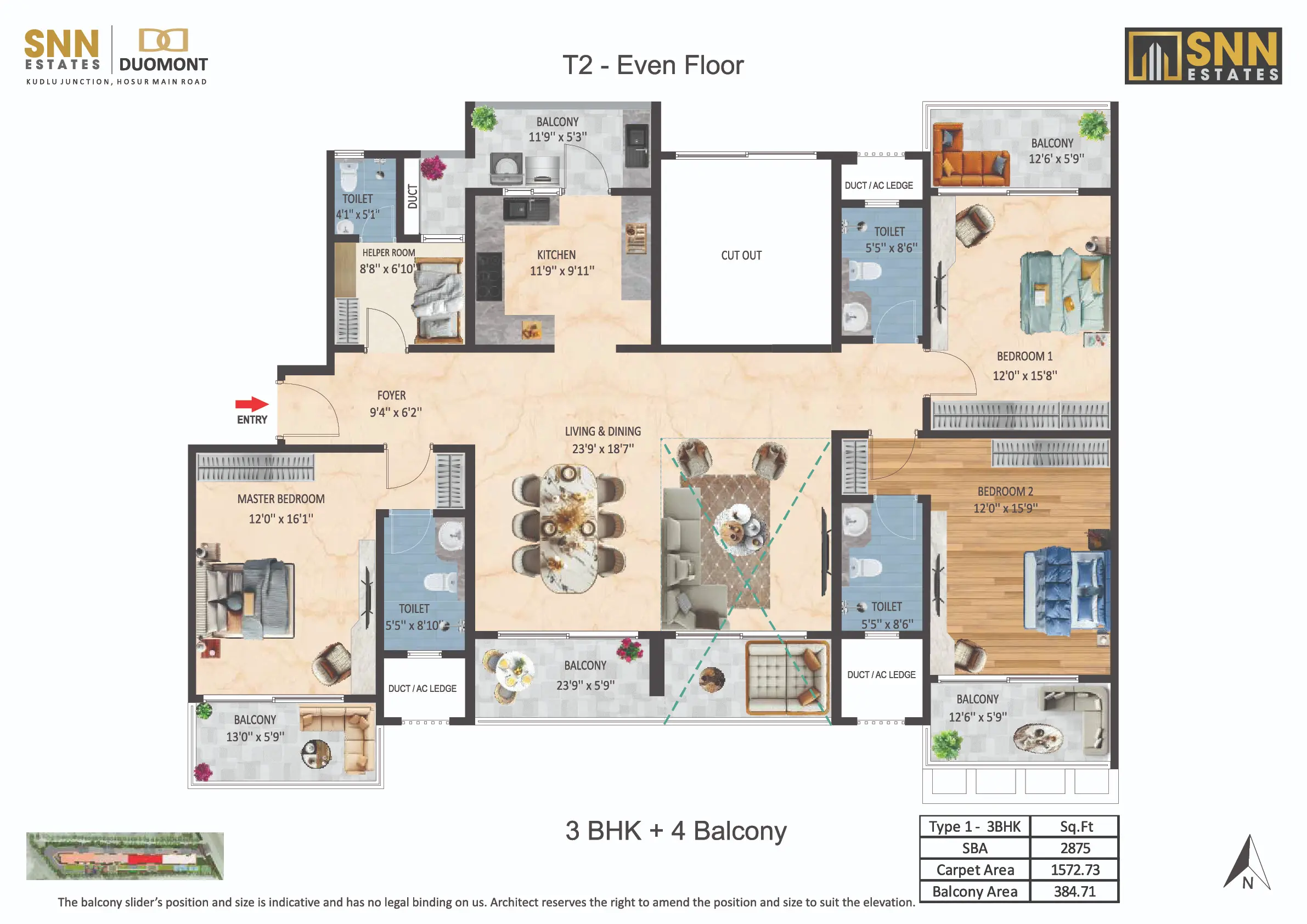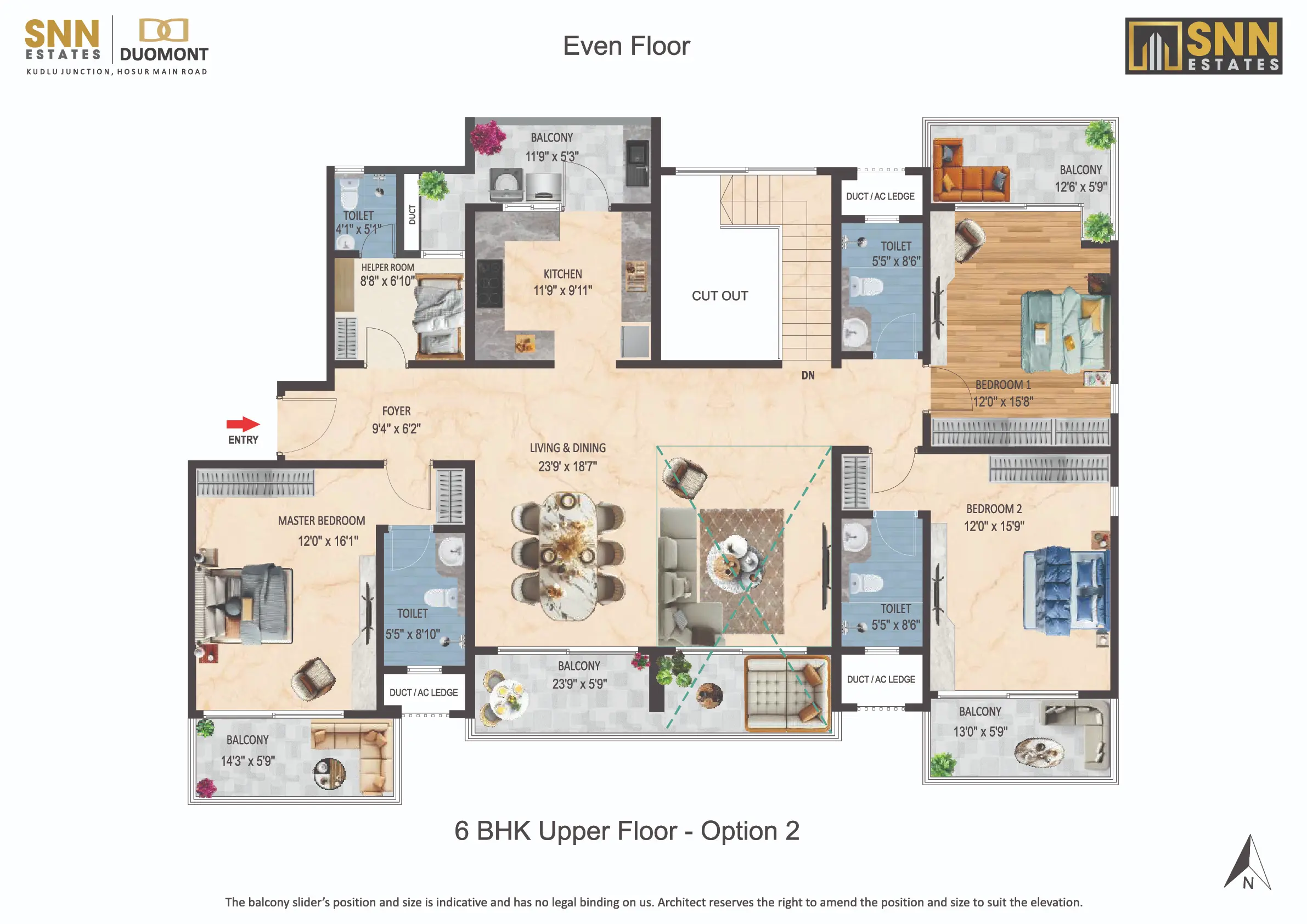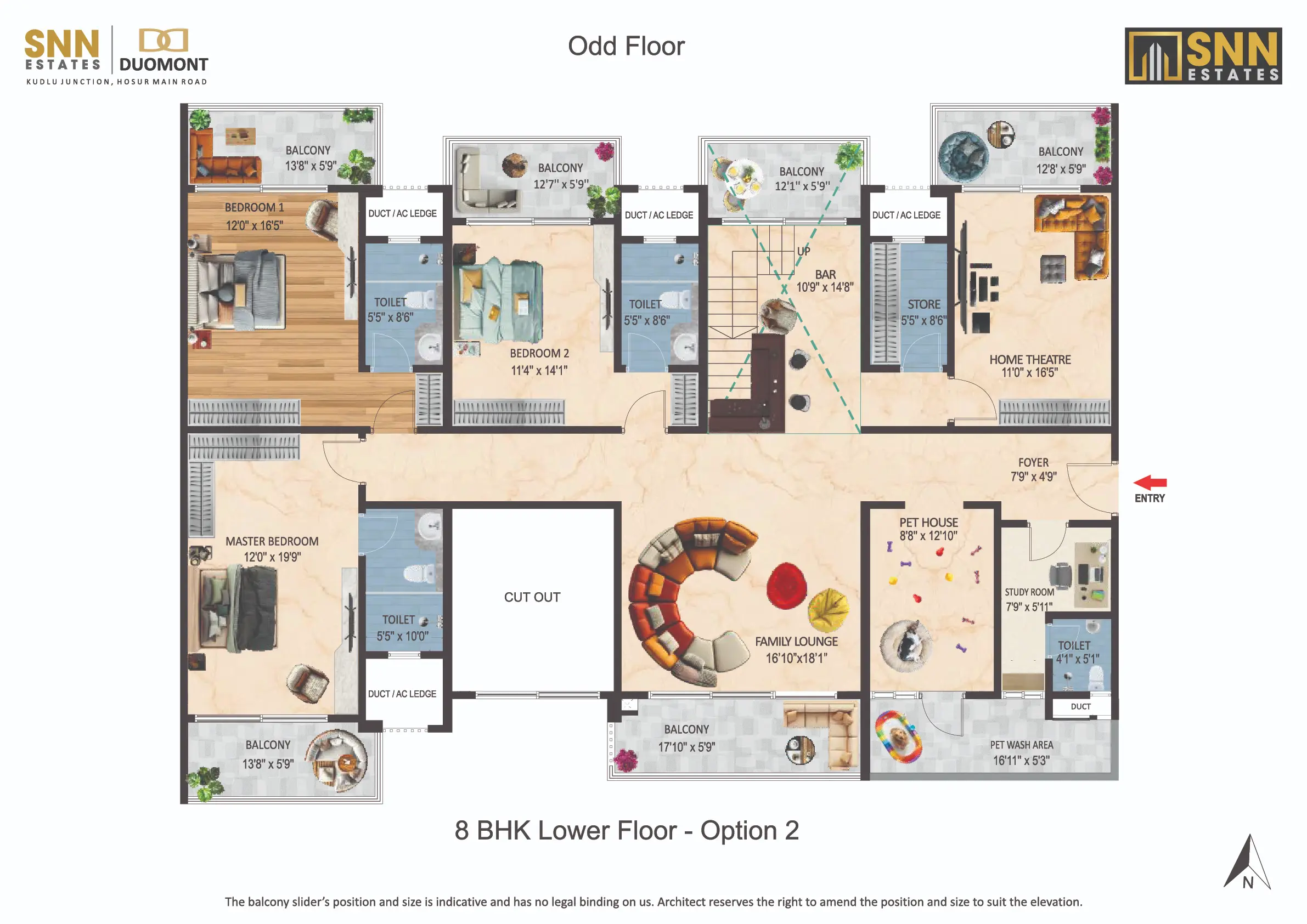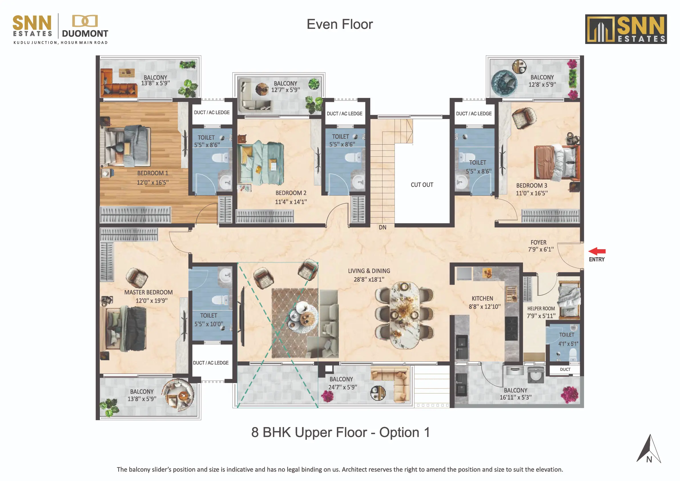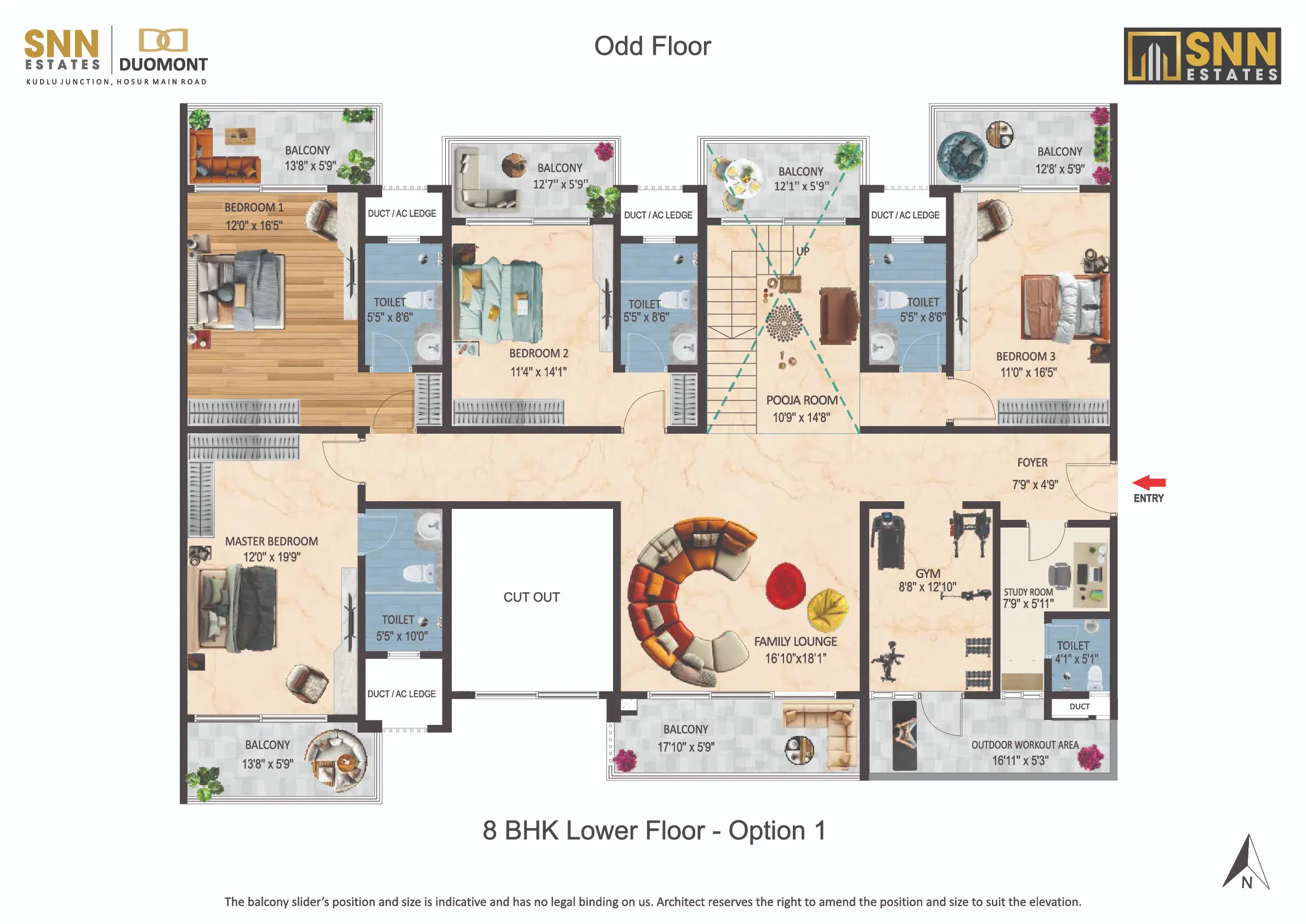 Introducing SNN Estates Duomont, an ultra-luxury landmark in South Bangalore. Experience “Luxury Doubled” with dramatic double-height living/dining areas and balconies, filling every home with light and scale. Offering versatile 3 to 8 BHK residences, plus a Sky Deck and Gold Class Clubhouse, Duomont is crafted for elite, timeless sophistication.