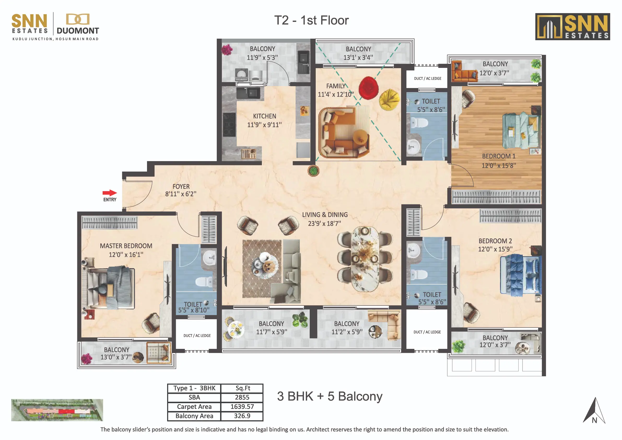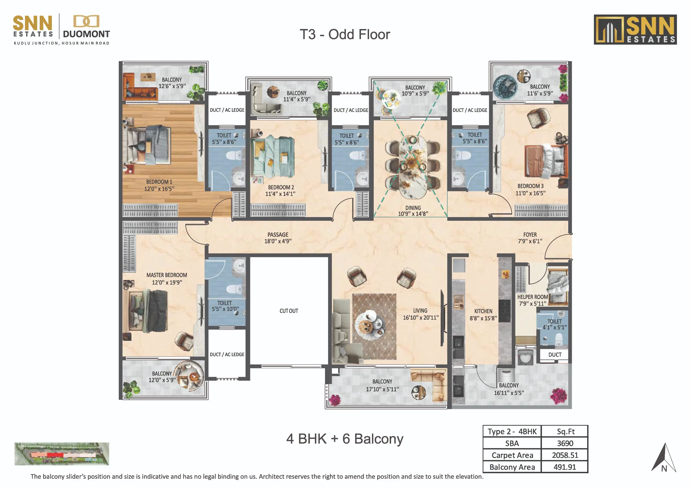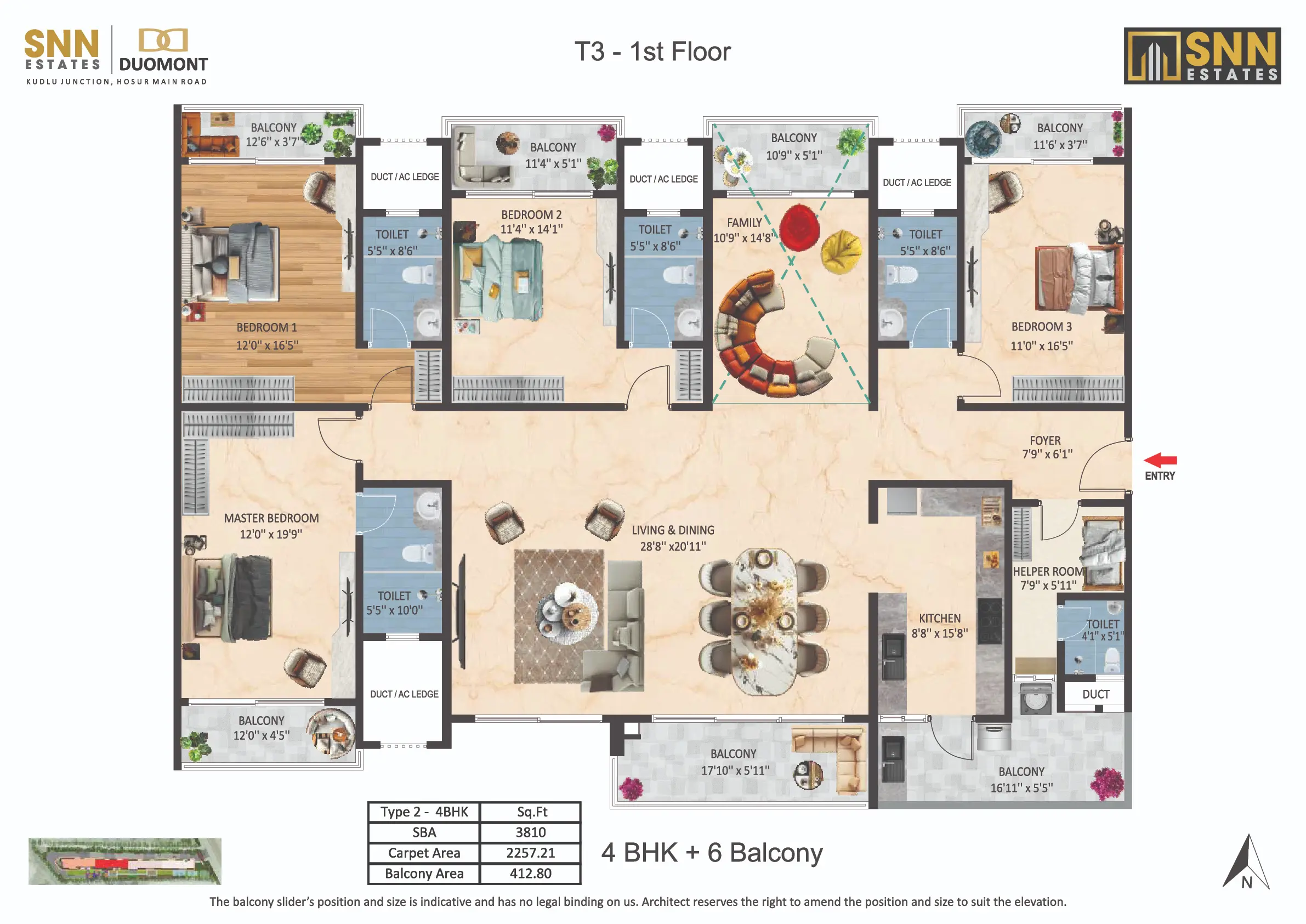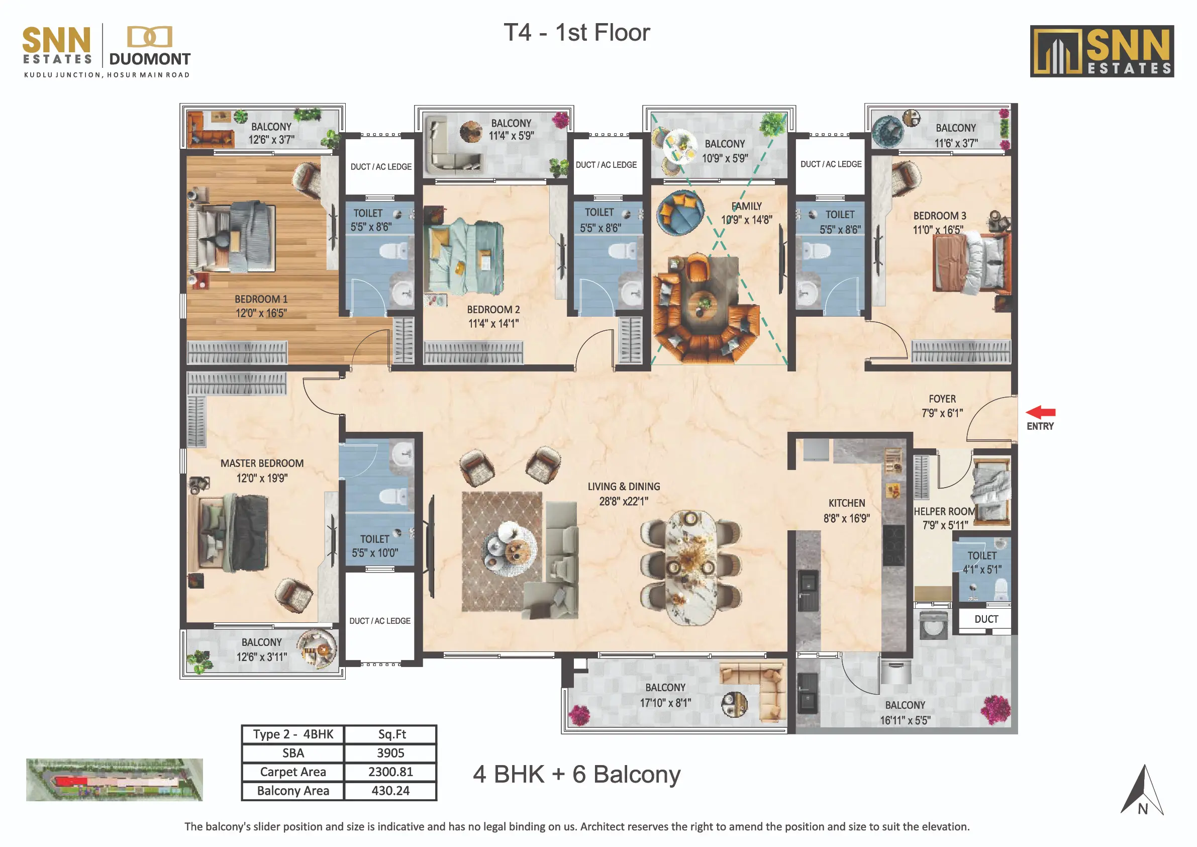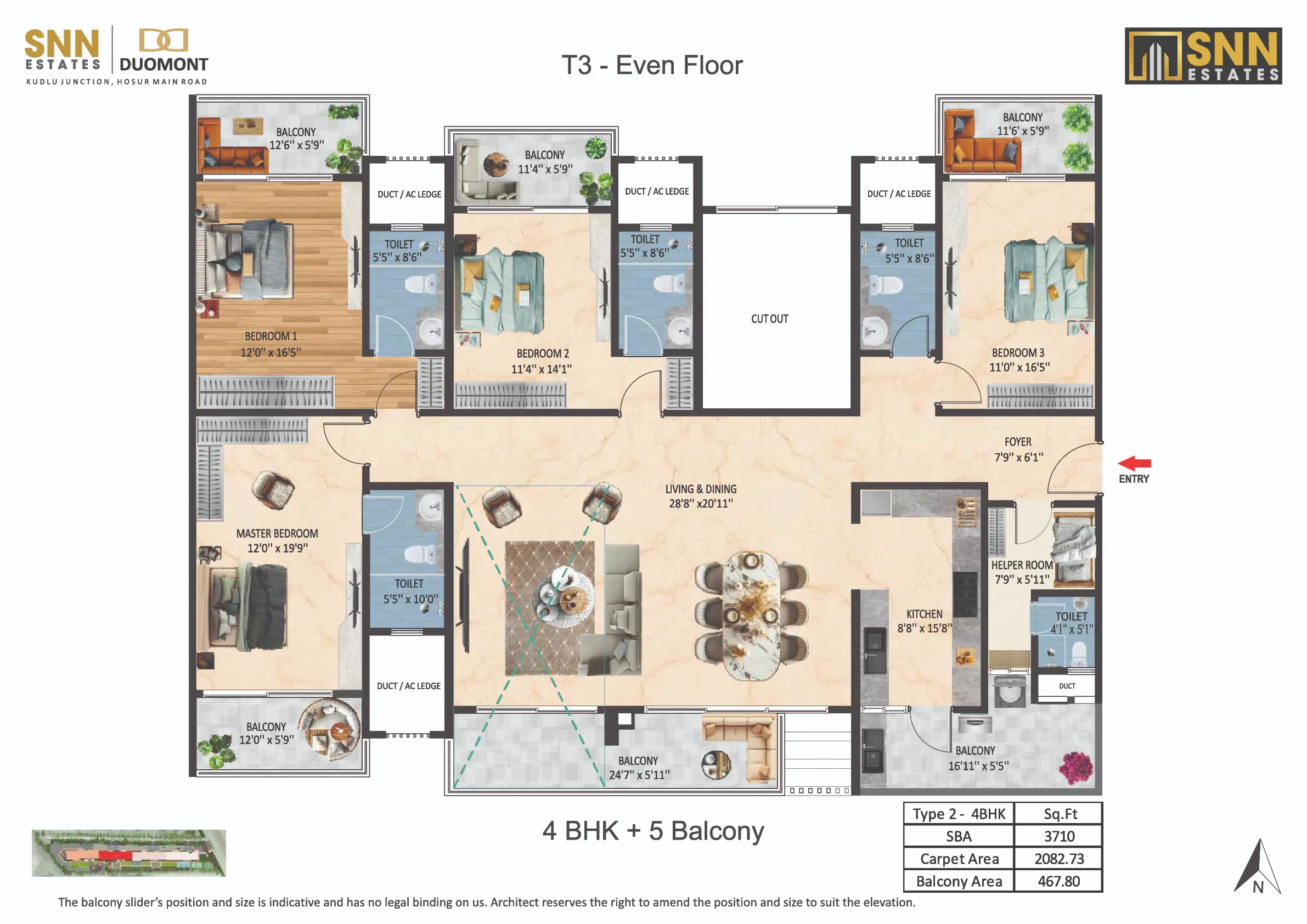 Introducing SNN Estates Duomont, an ultra-luxury landmark in South Bangalore. Experience “Luxury Doubled” with dramatic double-height living/dining areas and balconies, filling every home with light and scale. Offering versatile 3 to 8 BHK residences, plus a Sky Deck and Gold Class Clubhouse, Duomont is crafted for elite, timeless sophistication.